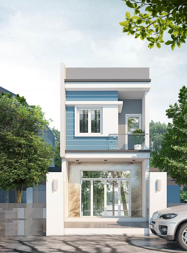Mẫu phối màu xanh dương ngoại thất cho nhà phố