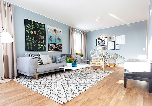Với đại đa số gia đình hiện nay, phòng khách thường được sử dụng làm nơi sinh hoạt, đón tiếp bạn bè, người thân. Sơn phòng khách màu xanh dương làm chủ đạo sẽ mang đến sự trung hòa, kết nối, giúp không gian trở lên thông thoáng, cởi mở hơn.