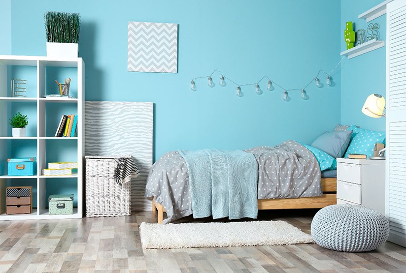 Màu sơn xanh dương với sự êm ái, nhẹ nhàng, có khả năng kích thích cơn buồn ngủ thường được lựa chọn để sử dụng rất nhiều trong không gian phòng ngủ, đặc biệt là phòng ngủ của trẻ nhỏ.