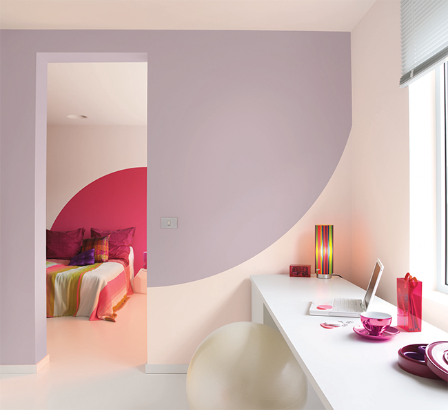 Tạo dựng cảm hứng lãng mạn với những đường nét táo bạo, sặc sỡ kết thúc với tông màu hồng. Các đường cong phân lớp tạo ra một kết nối hình ảnh mạnh mẽ giữa các phòng. Chọn kết hợp màu sắc trong các sắc thái bổ sung cho một không gian hài hòa, hoặc màu sắc chấm phá cho một đổi mới năng động hơn.