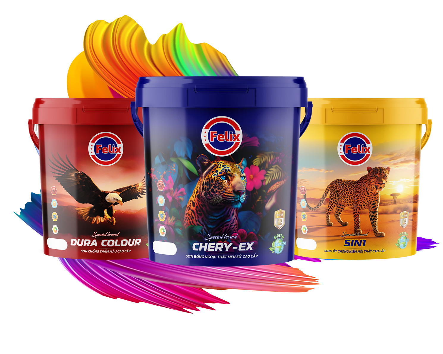 Mang trong mình tôn chỉ “Bền vững cùng năm tháng”, FELIX tập trung phát triển các dòng sơn cao cấp và phụ gia sơn chuyên dụng. Sản phẩm FELIX ứng dụng công nghệ Nano hiện đại, mang đến những tính năng ưu việt: chống thấm hiệu quả, độ bám dính cao, kháng kiềm, bền màu và thân thiện với môi trường – phù hợp hoàn hảo với điều kiện khí hậu khắc nghiệt tại Việt Nam.