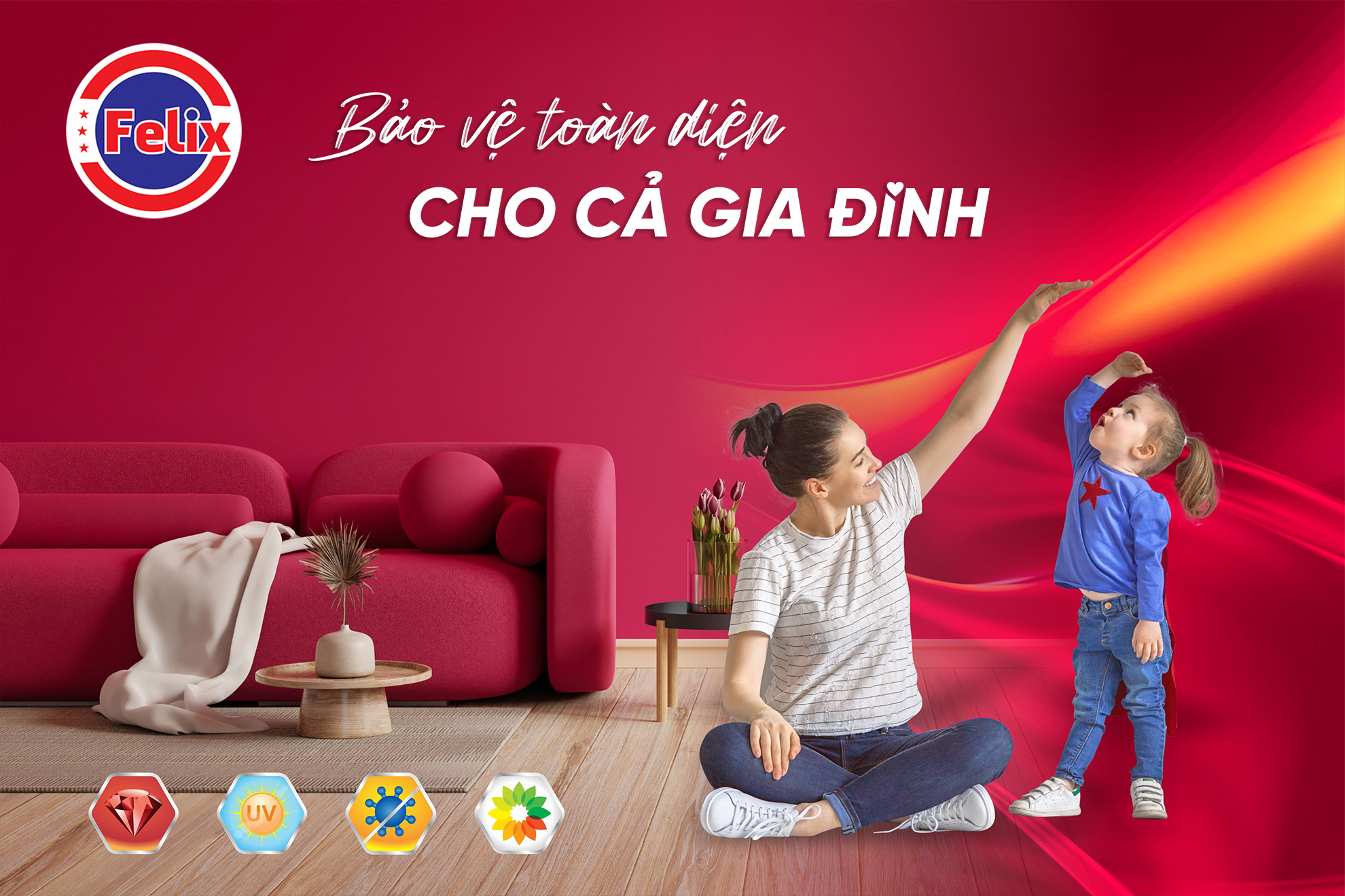 Mang trong mình tôn chỉ “Bền vững cùng năm tháng”, FELIX tập trung phát triển các dòng sơn cao cấp và phụ gia sơn chuyên dụng. Sản phẩm FELIX ứng dụng công nghệ Nano hiện đại, mang đến những tính năng ưu việt: chống thấm hiệu quả, độ bám dính cao, kháng kiềm, bền màu và thân thiện với môi trường – phù hợp hoàn hảo với điều kiện khí hậu khắc nghiệt tại Việt Nam.